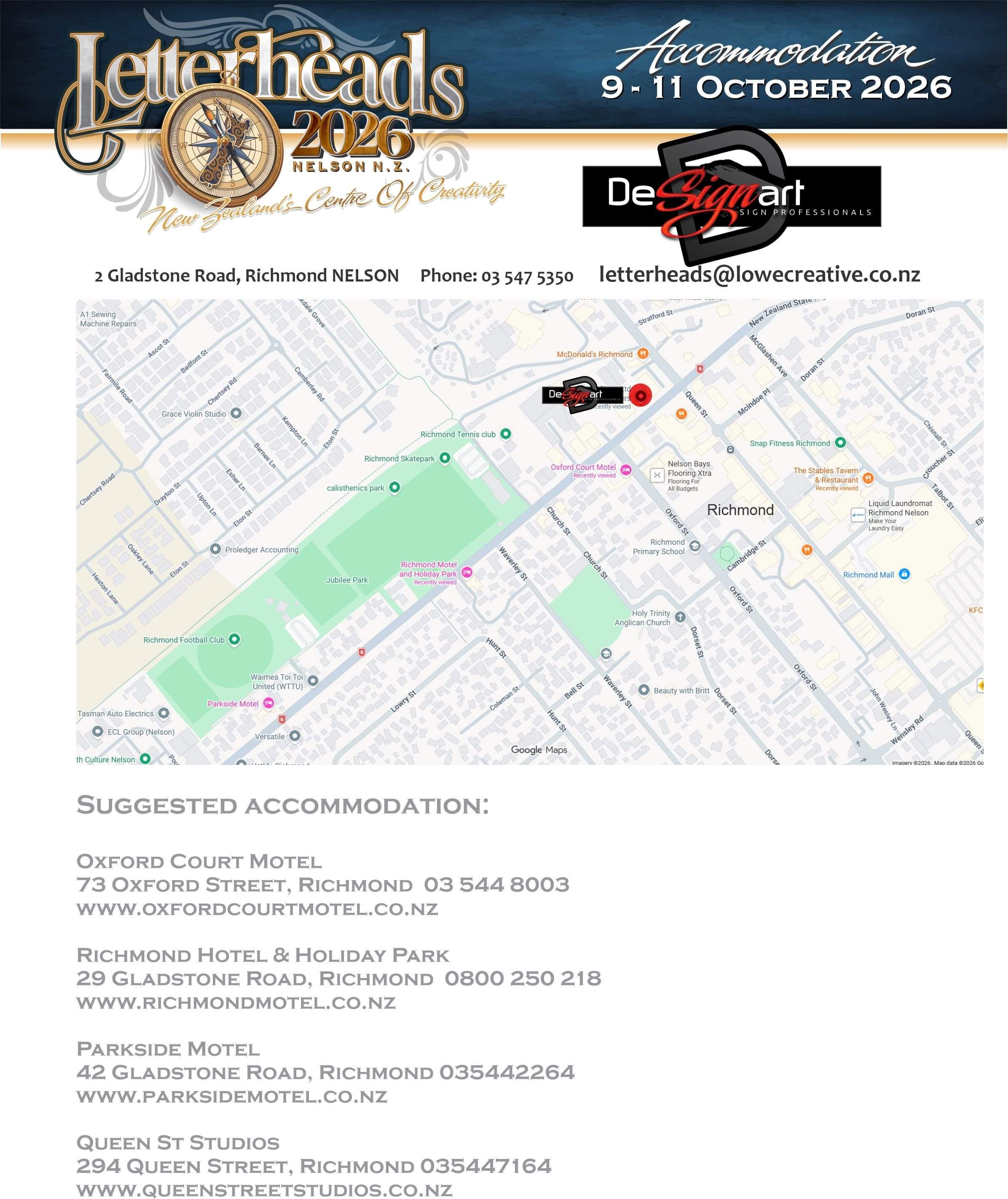 There are a number of accommodation suppliers within an easy walk from Designart. Please contact and organise your own accommodation.