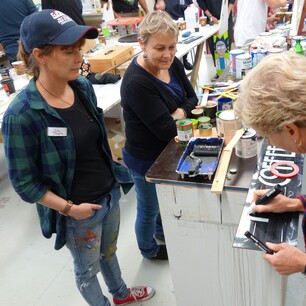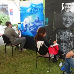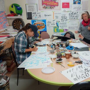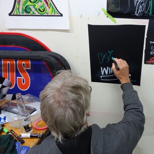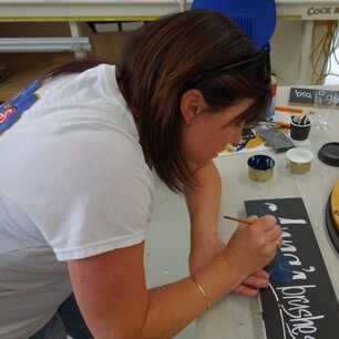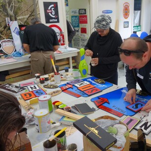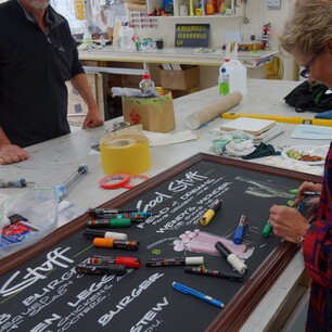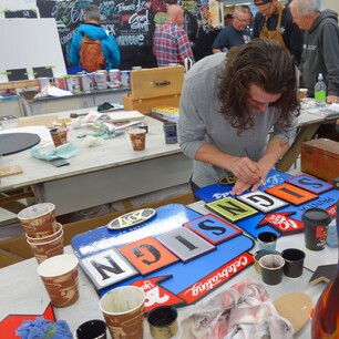 Many participants arrive with items to letter and decorate, including old fence posts, letterboxes, bar signs, and skateboard decks. In addition, a variety of materials are available on-site for creative expression.