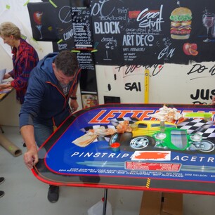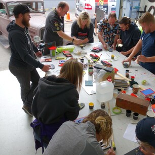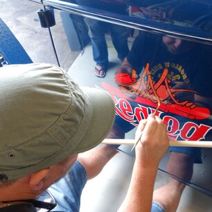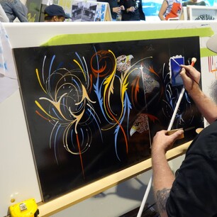 While panel jamming and hands-on projects remain the heart of the gatherings, these meets also feature a number of structured workshop including gilding, caricatures, sign aging, and layout, along with the traditional pin-striping competition.