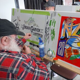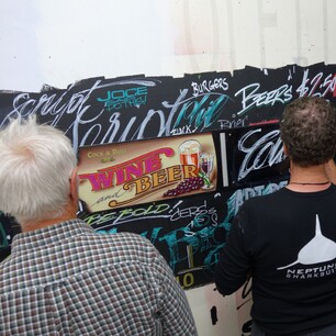 Known as ‘The Keepers of the Craft’, those attending are dedicated to sharing tips, techniques, ideas, and friendships. Letterheads meets have no fixed agenda, but a cherished tradition is the ‘panel jam’, where participants create small signs and panels purely for the joy of the craft—free from client demands. These pieces, often humorous and imaginative, are often exchanged among attendees or auctioned for charity at the event’s conclusion.
